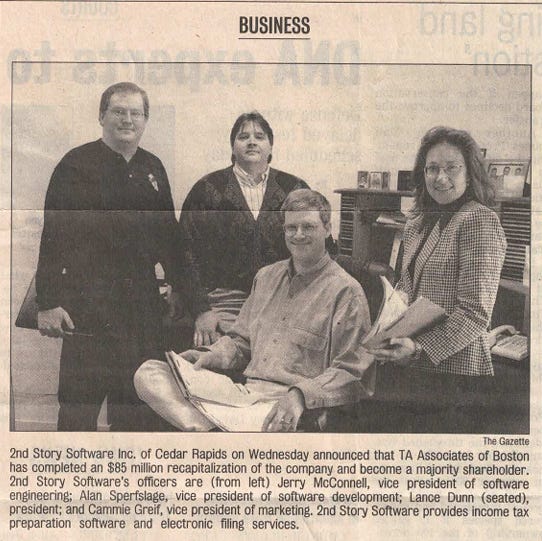The owners continually invested their sweat equity and TaxAct garnered customer trust and grew organically by listening to their customers and staying true to under promising and overdelivering. With much done on the cheap, including decorating the office with family photos in lieu of art, second-hand desks, and inexpensive advertising, the bottom line remained healthy. Multiple CPAs at the helm ensured a high degree of fiscal discipline. The four knew that they were not building a lifestyle company to pass down to descendants, thus, their eyes remained on the horizon, scanning the market for potential acquirers.