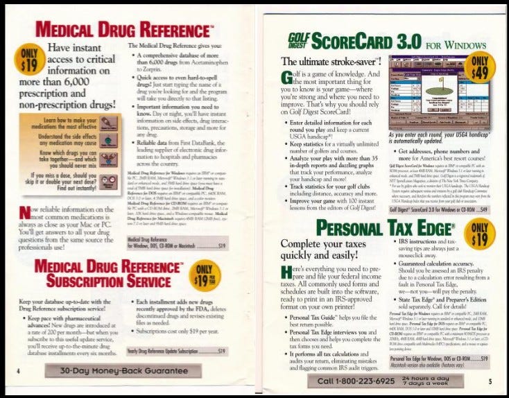 Realizing a broad portfolio of personal finance and tax products at Parsons Technology, Intuit acquired Parsons in 1994. A copy of Parsons’ catalog below shows the variety of products, some of which would soon find new homes. Sadly, for the dedicated users of Personal Tax Edge, Intuit retired it just a couple of years later. (sidebar: As a paid PTE user for multiple years, I felt Intuit acquired PTE for its superior user-interface and actually incorporated its best features into what became TurboTax rather than simply euthanize a competitor).